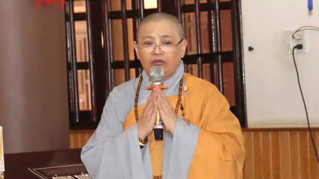 Đại diện chư hành giả an cư tại hạ trường chùa Pháp Hoa, Ni sư Thích Nữ Chúc Giác – Thủ quỹ Ban Trị sự GHPGVN tỉnh, Thiền chủ hạ trường, Trụ trì chùa Pháp Hoa, đã thành kính dâng lời tri ân cảm niệm đến Thượng tọa Thích Vạn Nhơn cùng đạo tràng Phật tử chùa Huệ Hương đã phát tâm hộ trì Tam bảo, thương tưởng cúng dường tịnh tài, tịnh vật, trợ duyên cho chư hành giả an tâm tu tập trong mùa An cư Kiết hạ PL.2569 – DL.2025.